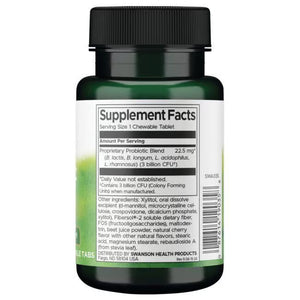„Swanson Probiotic for Kids“ tiekia 3 milijardus KSV vienoje tabletėje. Patentuotas mišinys apima 4 štamus: „Lactobacillus acidophilus“ ir „Lactobacillus rhamnosus“, du štamus, kurie padeda skaidyti maistines medžiagas, gamindami pieno rūgštį ir laktazę; bei „Bifidobacterium lactis“ ir „Bifidobacterium longum“, dar du pieno rūgštį gaminančius štamus, kurie kartu veikia, kad palaikytų virškinimo ir imuninę sveikatą. Šios kramtomosios, be cukraus tabletės turi natūralų vyšnių skonį, todėl yra idealus probiotikas vaikams.